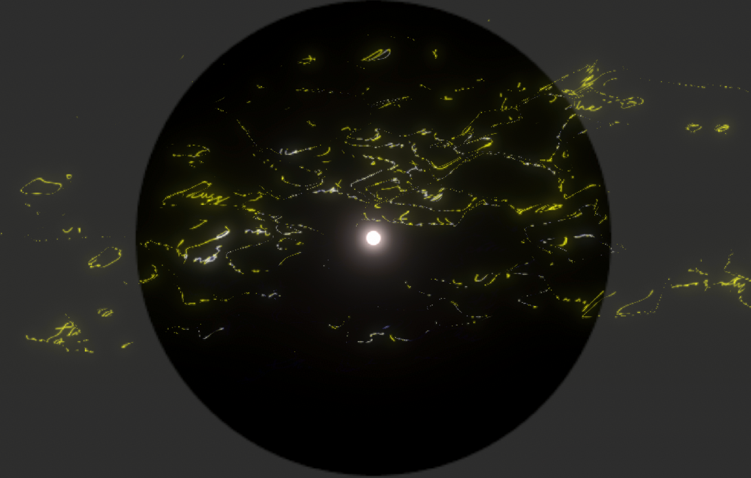 It is a minimal, contemplative, alt.ctrl game where players use a hand-made, synth-like controller to find the correct locations for on-screen pixels. Subtle visual and sonic cues help to guide the player. As these pixels are moved to their correct locations, they create unique constellations. The creation of these constellations resolves obfuscated abstract content on the screen, revealing texts from Søren Kierkegaard's essay Repetition. Once the image is fully uncovered, the player is given the opportunity to read the text before the whole image shrinks back down to the single white dot, offering them the opportunity to undergo the activity again. Through this repetitive act of finding, listening, observing, and reflecting, the player is invited into a more contemplative form of play, a play that is guided by them, where there is no discrete ending or win-state.